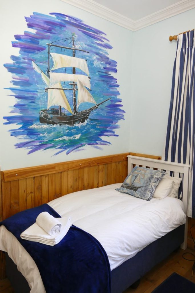 This modern two-sleeper room with separate beds makes this a lovely space to share for children or co-workers. And as the name suggests it has a nautical theme bringing a bit of the coast into the East Free State. It is ideal for kids or for people working close by in need of a place to stay.